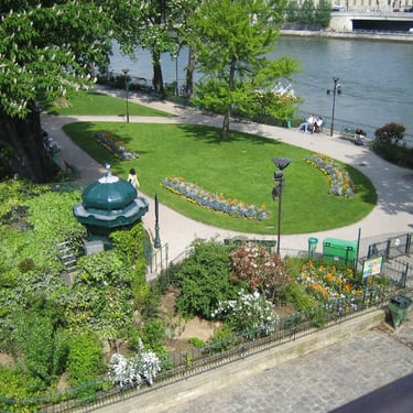 Profiter d'un moment de détente : Laissez-vous bercer par le murmure de la Seine et imprégnez-vous de l'atmosphère paisible du square.